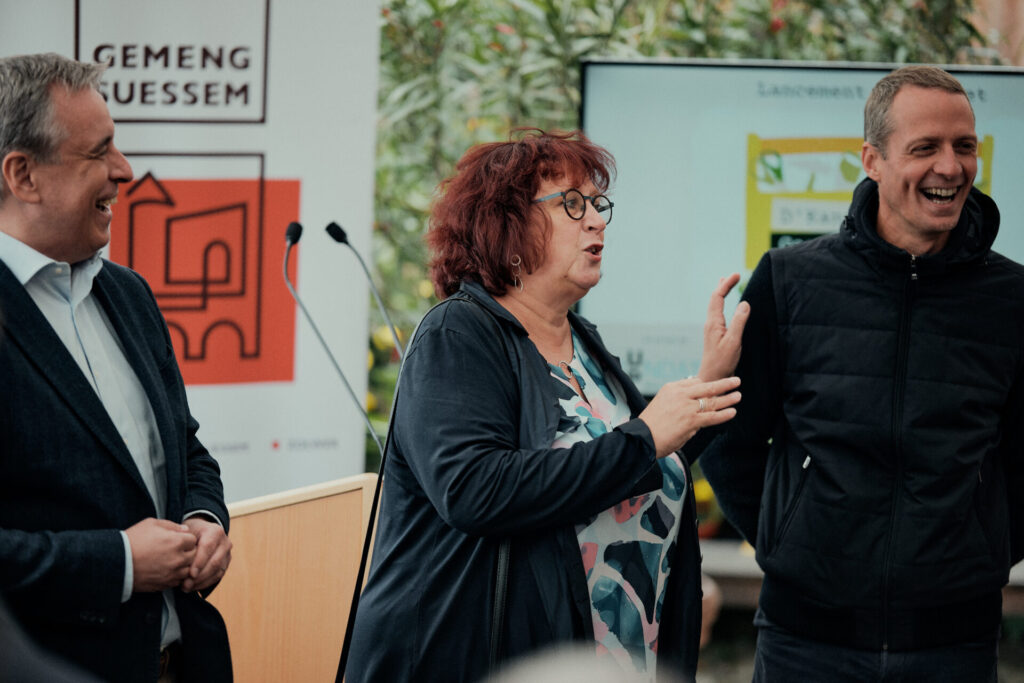 La matinée s’est articulée autour de trois temps forts : un accueil officiel et une présentation du projet par Madame la Bourgmestre Simone Asselborn-Bintz et des représentants de UP_FOUNDATION, une visite guidée du chantier pilote au Matsgesfeld, puis un moment convivial autour d’un casse-croûte.