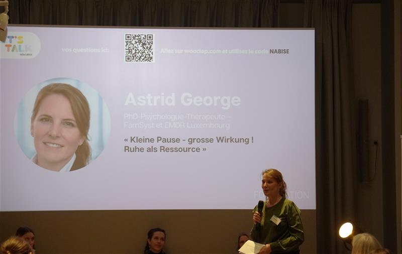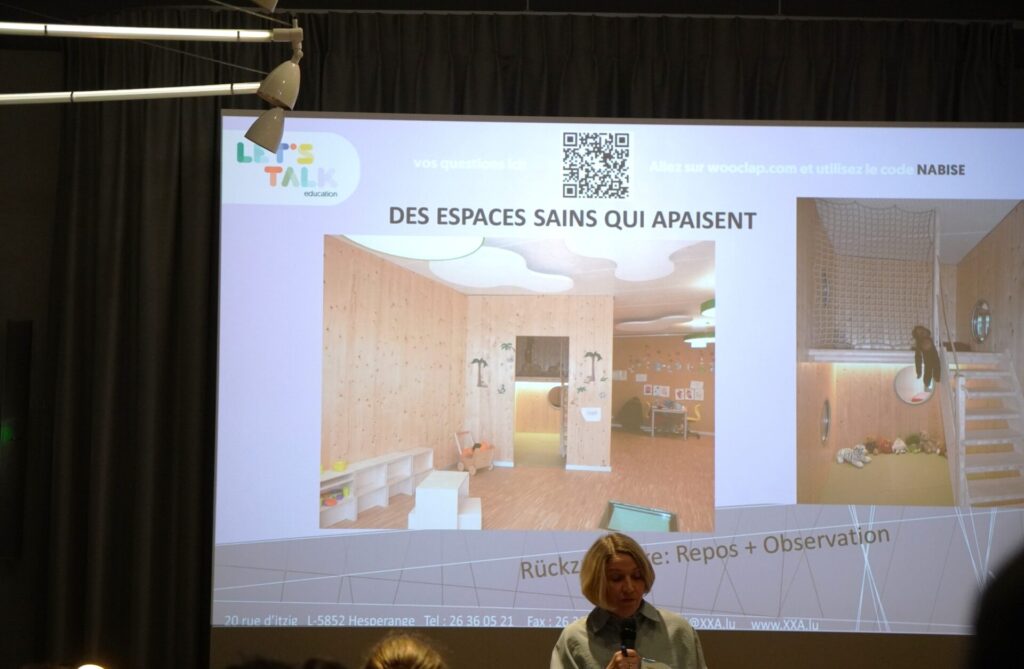 À travers une série de « flashs d’inspiration » de 10 à 15 minutes, cinq intervenant·e·s aux parcours complémentaires – Tom Rausch (conseiller de gouvernement), Sophie Esch (enseignante), Patricia Streber (architecte-urbaniste), Dr Laure Miltgen (pédiatre) et Astrid George (psychologue-psychothérapeute) – ont mis en lumière le rôle essentiel du repos dans le développement et le bien-être des enfants. Leurs regards croisés ont permis d’aborder la thématique sous différents angles : santé, apprentissage, aménagement des espaces et accompagnement des enfants.
